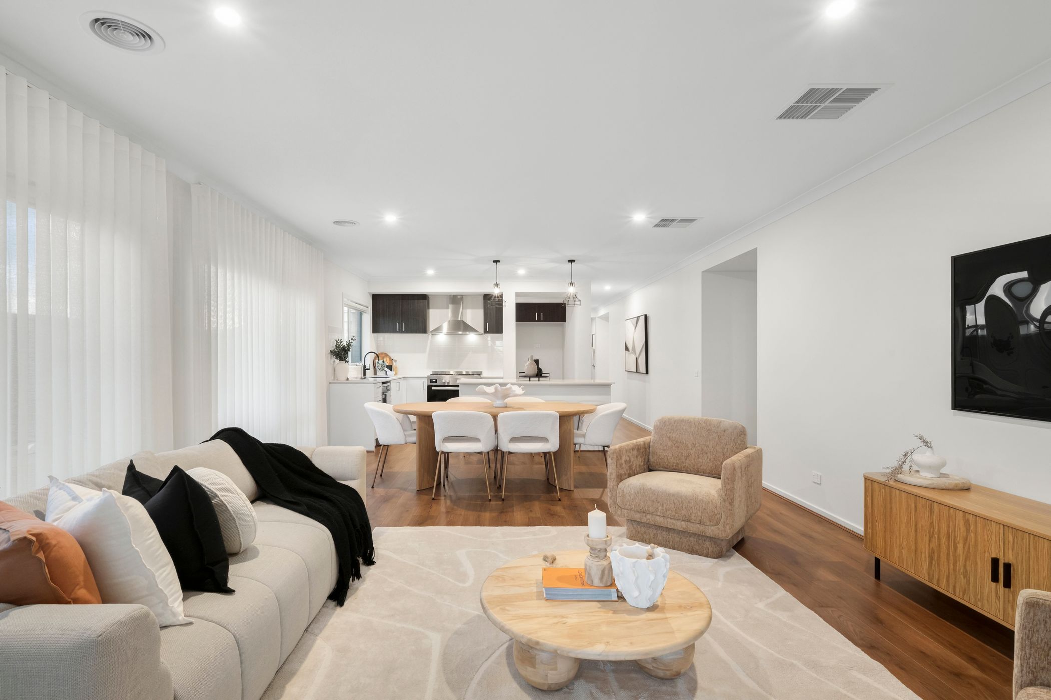 From the moment you step inside, there is an immediate warmth. Light filters gently through sheer blinds, softening each room and creating a calm, welcoming atmosphere. It is the kind of home that feels peaceful in the quiet moments, yet effortlessly comes alive when filled with family and friends.